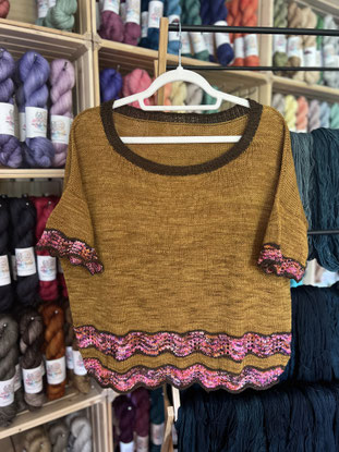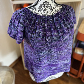 In diesem schönen Design von Caitlin Hunter trifft "Färberotz" (mehrfarbige und gesprenkelte Garne) auf schlichtes semi-solid.