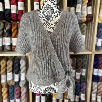 Hier siehst du den Brioche Bliss Wrap Cardigan von Simone Ryan. Wir haben die Version etwas abgeändert und nur kurze Ärmel gestrickt. So eignet sich dieser Cardigan auch perfekt für kühle Sommernächte.